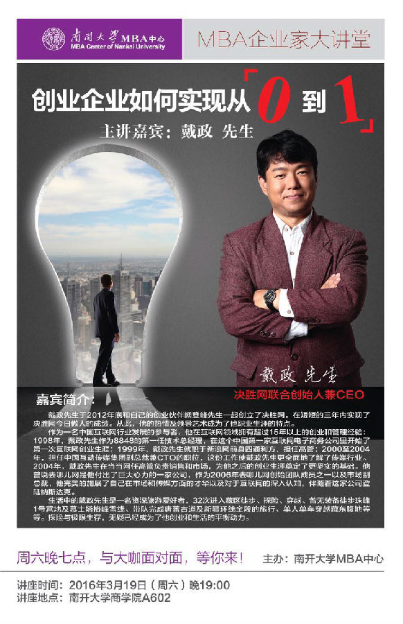 MBA企业家大讲堂|决胜网创始人:创业企业如何实现0到1?