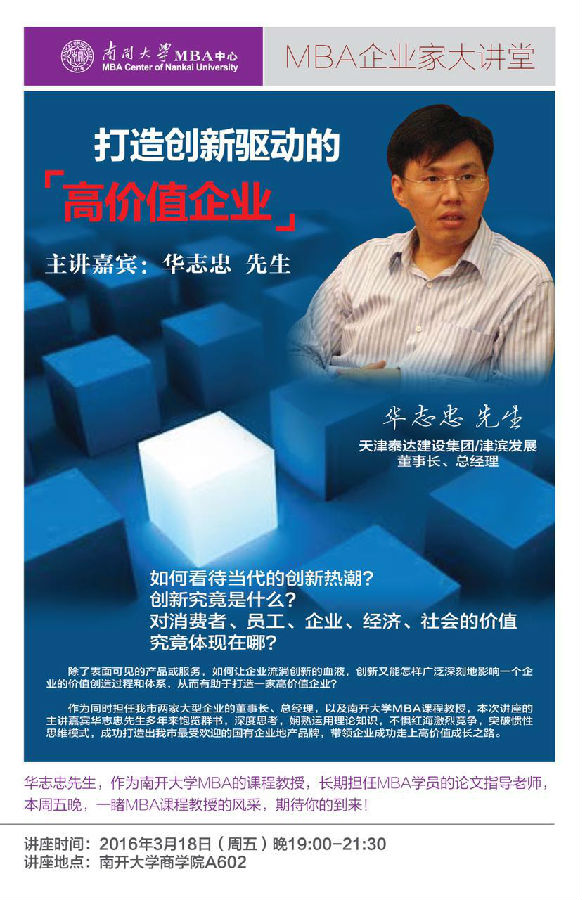 MBA企业家大讲堂|华志忠:打造创新驱动的“高价值企业”