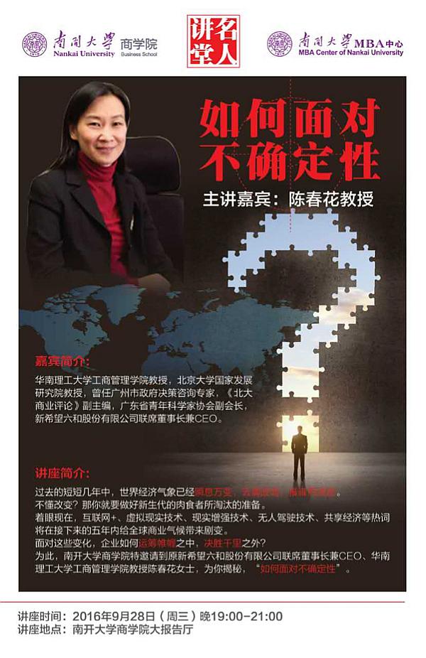 为此,WilliamHill中文官方网站特邀请到原新希望六和股份有限公司董事长兼CEO、华南理工大学工商管理学院教授陈春花女士,为你揭秘,“如何面对不确定性”?