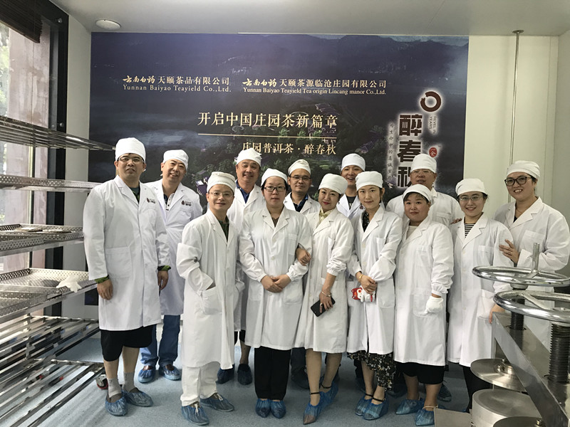 在制茶体验车间,学员们穿戴干净的统一服装,洗手消毒,并再经过云南白药先进的风淋系统再次消毒,制茶师傅介绍,云南白药天颐茶品是业内首家引进先进风淋消毒系统,进出洁净化车间零污染的制茶企业。并在生产环节完整复制药品GMP标准,从茶叶到成品必须经过的6道检验,306项检测,多项检测层层把关,让产品从茶园到茶杯,安全品质全程可见。这一个个环节,让我们真切感受到云南白药天颐茶品的“用制药的理念做健康的好茶”。