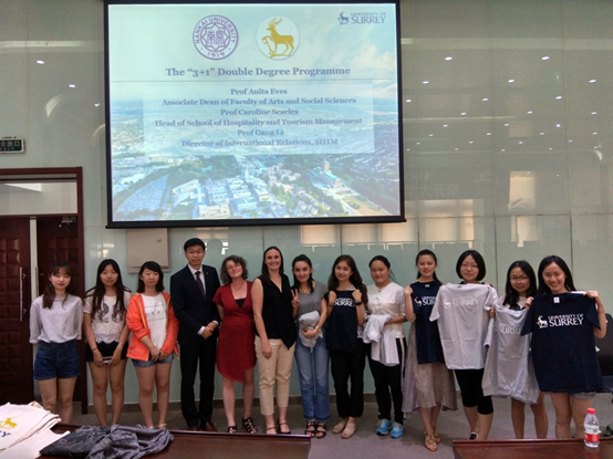2017年5月26日,英国萨里大学人文学部副部长Anita Eves教授、旅游学院院长Caroline Scarles教授女士以及萨里大学旅游学院外事负责人李刚教授一行三人到访WilliamHill官网,双方就南开-萨里两校william威廉中文官网3+1本硕学位合作项目的进一步推进落实进行了进一步交流。