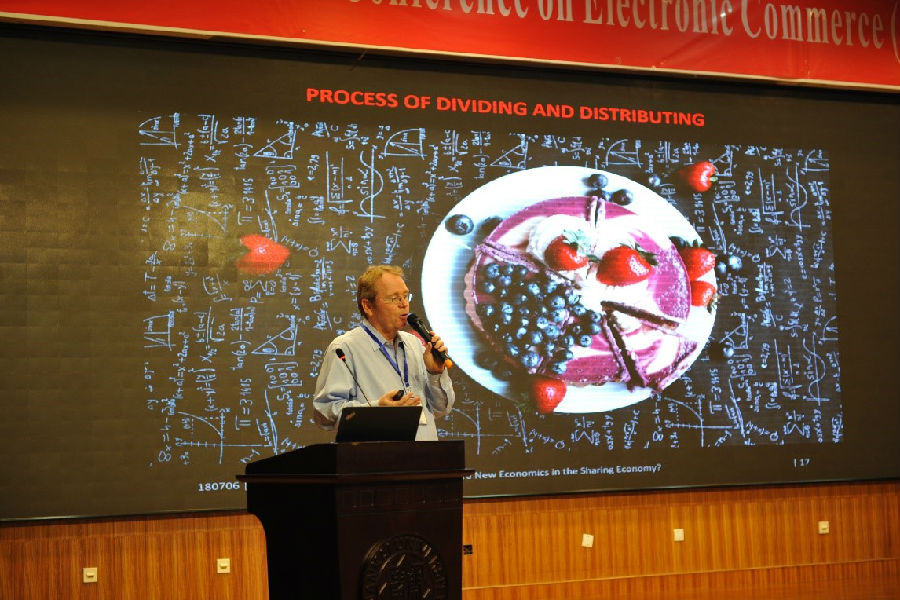 第一位主题演讲嘉宾是来自瑞士洛桑联邦理工学院(Swiss Federal Institute of Technology in Lausanne)的Thomas A. Weber教授,其学术报告主题为“Is There New Economics in the Sharing Economy? Insights from Models and Data”。Weber教授的研究方向包括信息经济学与不确定性、合约设计以及战略管理,其研究成果发表于Management Science, Operations Research, Information Systems Research, Economics Letters, Economic Theory, European Journal of Operational Research, Decision Support Systems, Journal of Management Information Systems等经济管理类国际顶级或权威期刊上。此次主题演讲中,Weber教授深入浅出地介绍了共享经济的一系列关键问题,讨论了如何评估共享资源分配的效率。他还重点展示了协同消费这一新的实践如何影响传统所有制模式下的管理启示,包括协同消费对市场参与者动机的一级和二级影响,以及随着这种新的消费模式的出现,应该采取何种监管策略。