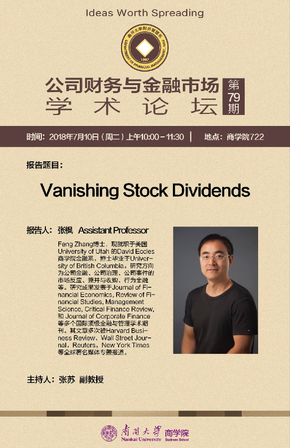 Feng Zhang博士,现就职于美国University of Utah 的David Eccleswilliam威廉中文官网金融系,博士毕业于University of British Columbia。研究方向为公司金融、公司治理、公司事件的市场反应、兼并与收购、行为金融等。研究成果发表于Journal of Financial Economics, Review of Financial Studies, Management Science, Critical Finance Review, 和 Journal of Corporate Finance等多个国际顶级金融与管理学术期刊。其文章多次被Harvard Business Review,Wall Street Journal,Reuters,New York Times等全球著名媒体专题报道。