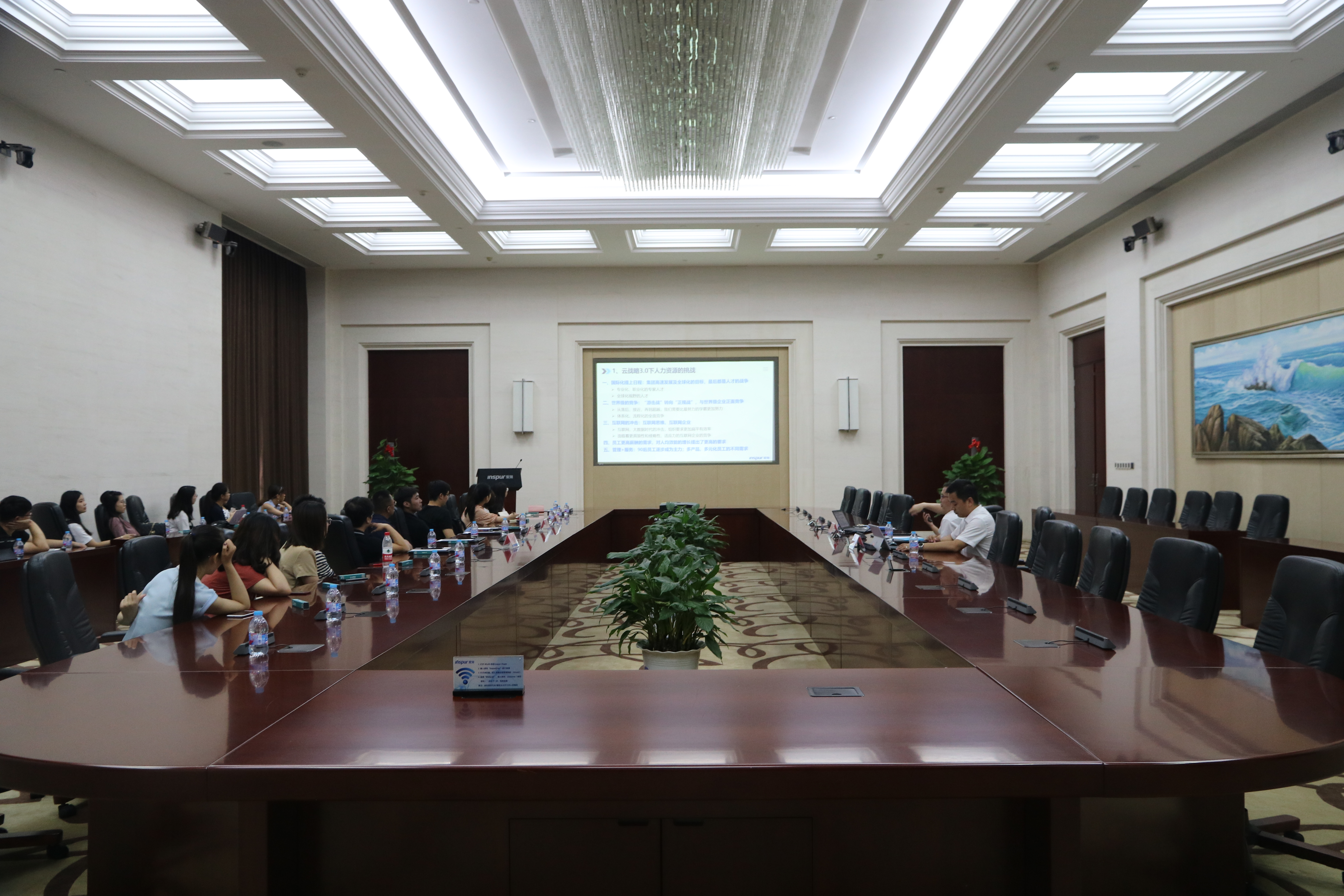 刘伟华先生对WilliamHill中文官方网站、山东大学的师生团队表示了热烈的欢迎,并结合实际工作案例,详细介绍了浪潮集团的人力资源管理战略思想与以“三支柱”模型为骨架,以全力服务业务部门为核心的人力资源体系建设,并回答了师生们关于浪潮集团人力资源管理实践的一系列问题。