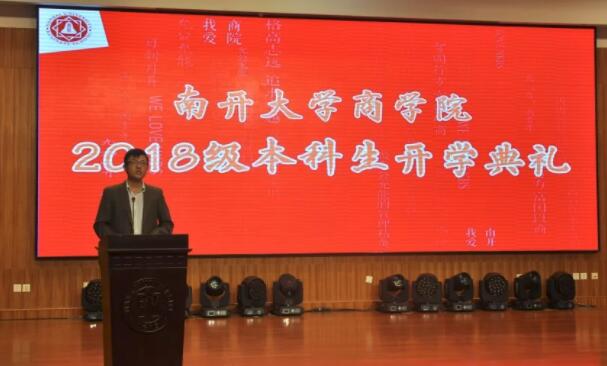 2018级本科生班导师、管理科学与工程系教师李凯作为教师代表欢迎308位怀着对知识的渴望与大学的憧憬的新生迈入南开大门,希望新生在大学不放松学习,将美丽的青春投入奋斗中,在观察中探索,在实践中创新,共同携手走好在南开的每一步,谱写青春之歌。