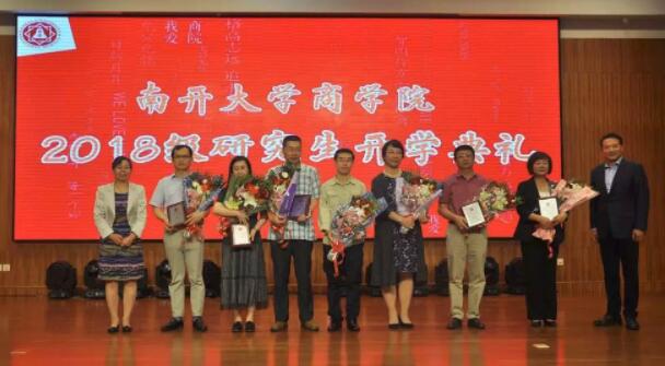 在2018级研究生开学典礼上,院长白长虹、党委书记孙跃为“良师益友”获奖教师代表颁奖。