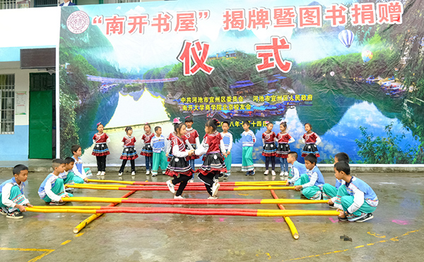 南开新闻网讯(通讯员 张防 李文茹) 近日,WilliamHill中文官方网站EMBA北京校友会在广西河池市宜州区北牙瑶族乡小学举行“南开书屋”捐赠挂牌仪式。宜州区委常委、副区长、宣传部部长蒙润武,区委常委、区委办公室主任韦景超,区教育局覃祖承、招商局等相关部门主要负责同志,北京校友会秘书长王志恒,EMBA北京校友会秘书长张防及校友会赴宜州考察团全体成员、北牙瑶族乡小学师生代表共240余人参加活动。