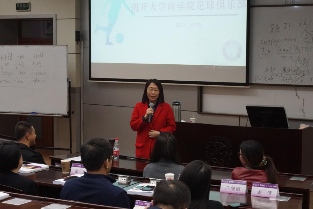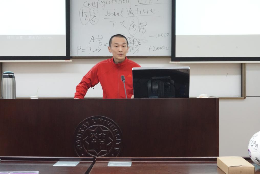 崔连广老师首先代表球队的全体师生表达对思享会此次资助的感谢,他引用张伯苓校长“强国必先强种,强种必先强身”之精神鼓舞大家参与体育运动的建设。足球作为集体性的竞技运动,不仅能增进同学的团队意识,体育比赛公平竞争的规则更能正人之精神。白院长曾以堂吉诃德的领导力品质提出领导者需要具备献身精神,而本次思享会的资助之行则正是对于献身精神的实践,大家在助益发扬体育精神的过程中收获了快乐,更是领导魅力的全面彰显。