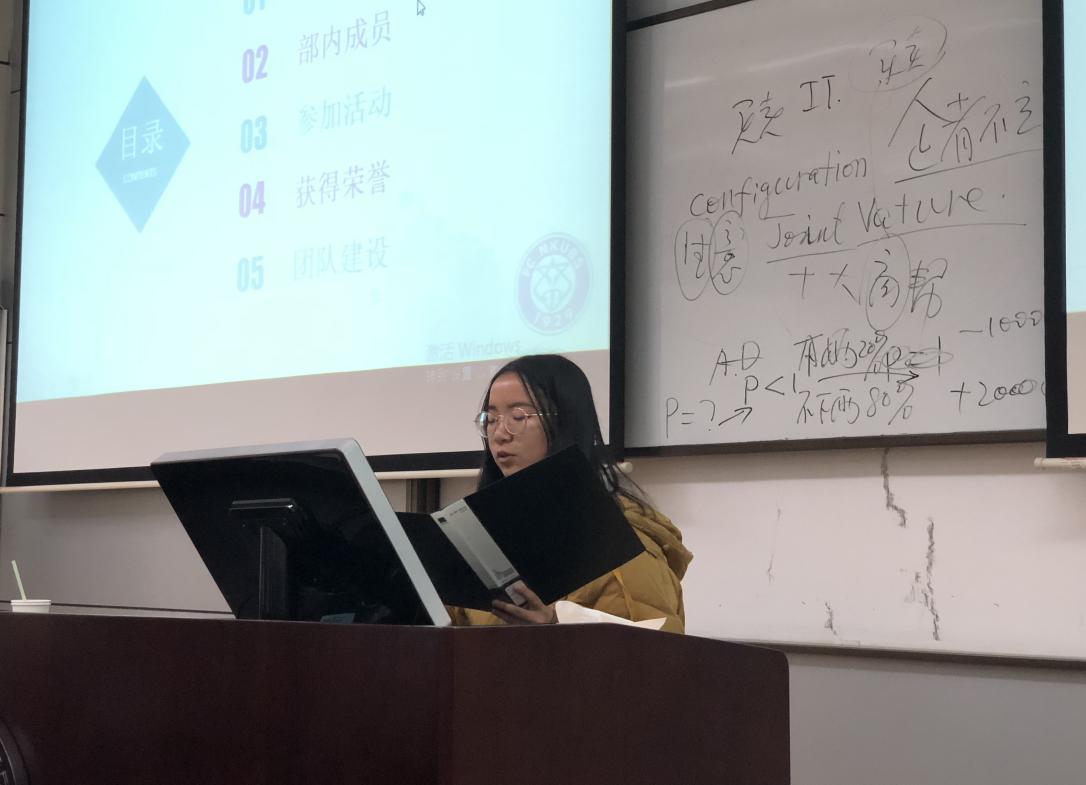 足球队领队洪子茹同学做球队基本情况介绍,由队长木尔扎提同学致感谢词。