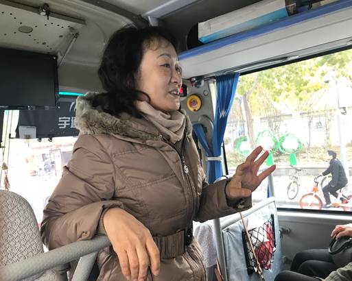 支部书记崔津莲在行车过程中向大家介绍参观的时间安排和注意事项。