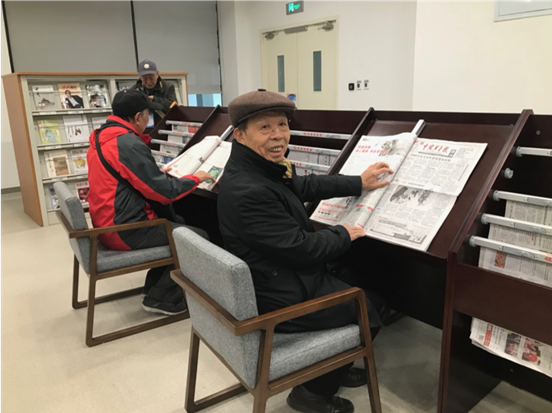 这是位于图书馆一层大厅北侧的老年人报刊阅览区域。