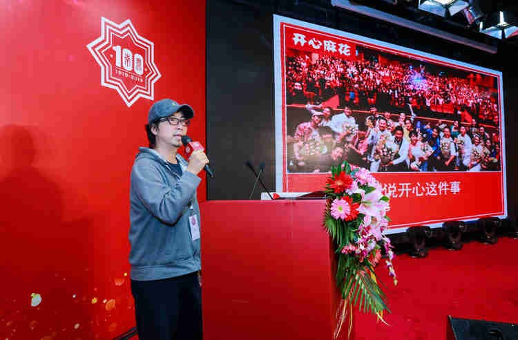 在主题讲座环节,北京开心麻花娱乐文化传媒股份有限公司创始人兼艺术总监张晨进行《说说开心这件事》主题演讲。