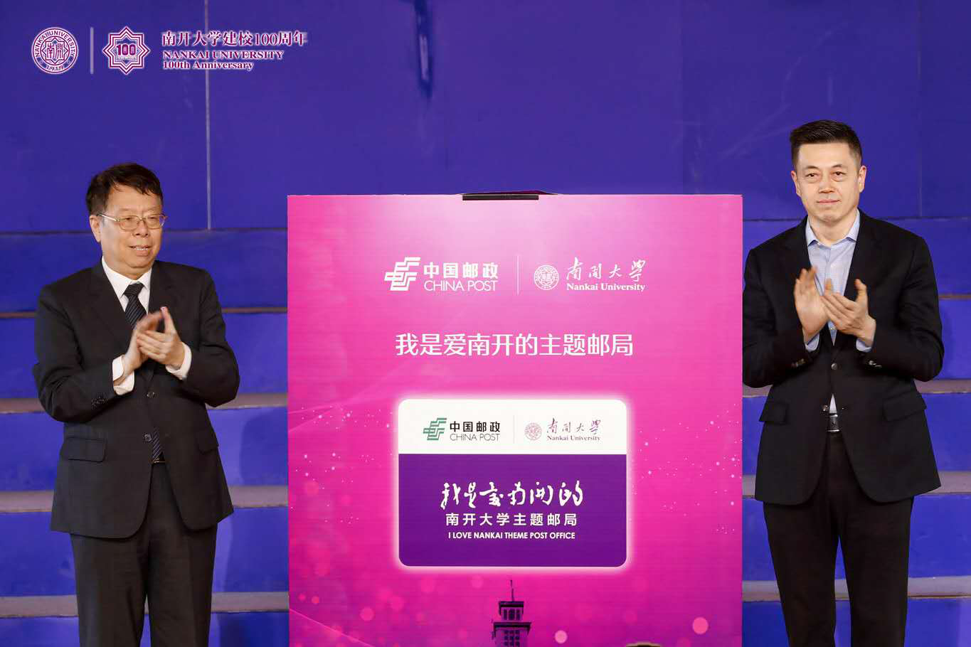 朱光磊副校长(左)为“我是爱南开的”主题邮局揭牌