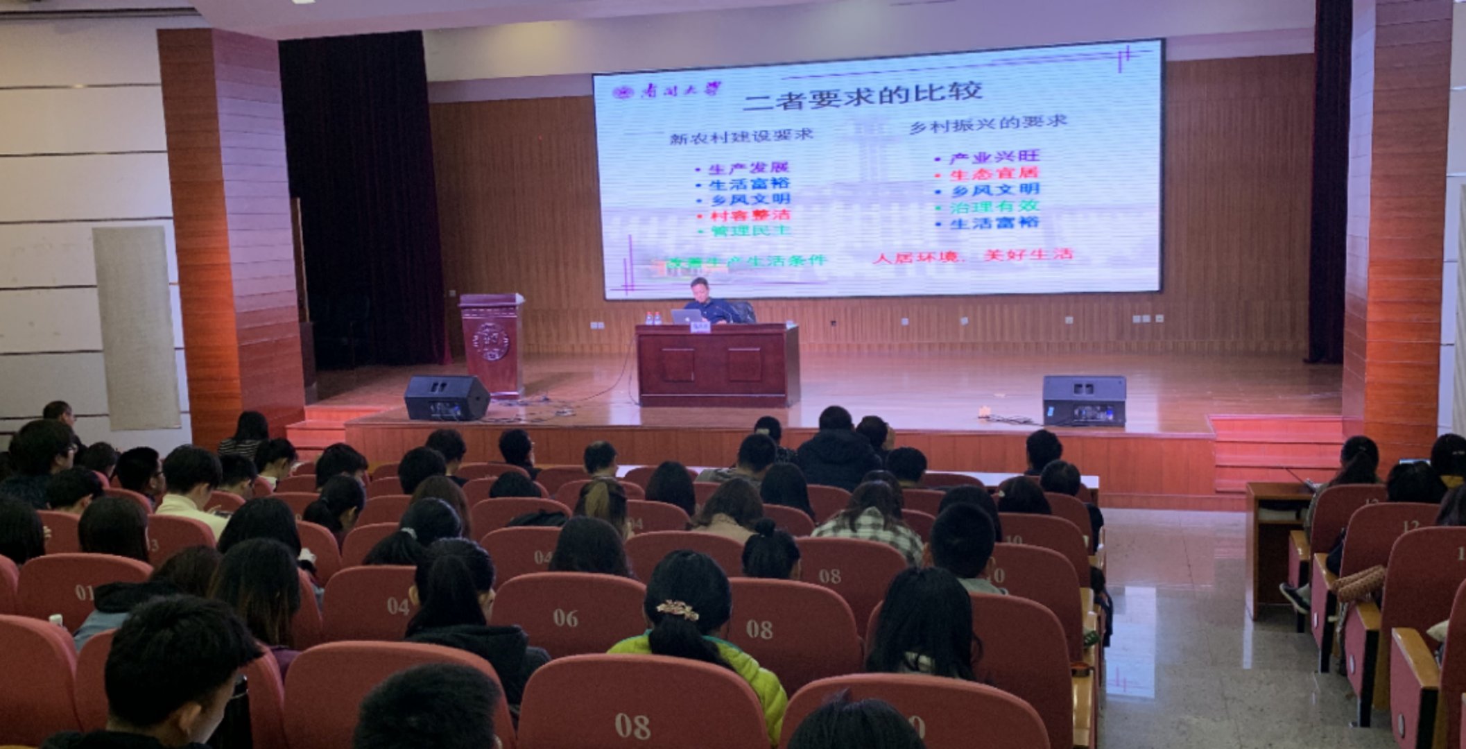 讲座过程中学习氛围浓厚,老师和同学们专心听讲,认真思考。2016级本科生马文钰说:“乡村振兴作为国家发展战略,要实现产业兴旺、生态宜居、乡风文明、治理有效和生活富裕的目标要求,需要我们新时代青年学生将自己的职业发展与广大乡村基层的需要结合起来,把小我融入大我,贡献我们的青春力量。”