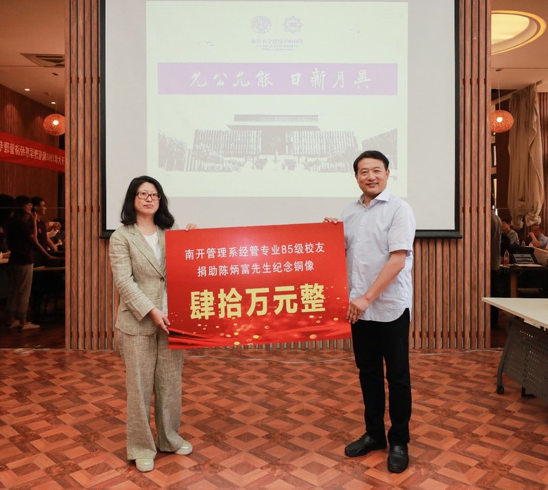 为回馈南开母校的培养关怀,感恩陈炳富先生为南开管理学科重建复兴所作的开拓性贡献,在白长虹院长的提议下,建造陈炳富先生纪念铜像专项基金募集活动引发85级经济管理专业校友强烈共鸣,大家踊跃捐款,共募集资金40万元。