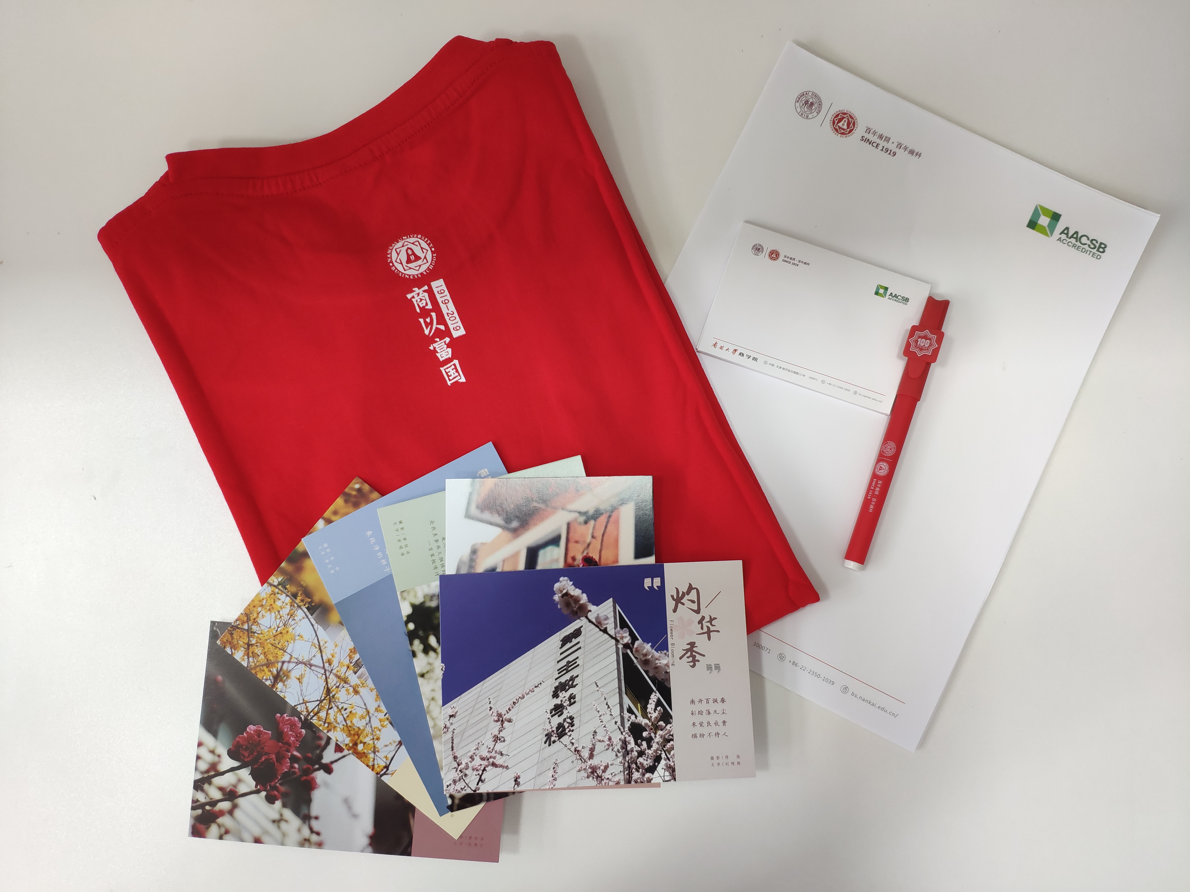 william威廉中文官网校友办公室为校友们准备了百年校庆纪念T恤、william威廉中文官网学生设计的南开主题明信片、百年商科主题手环等礼物。