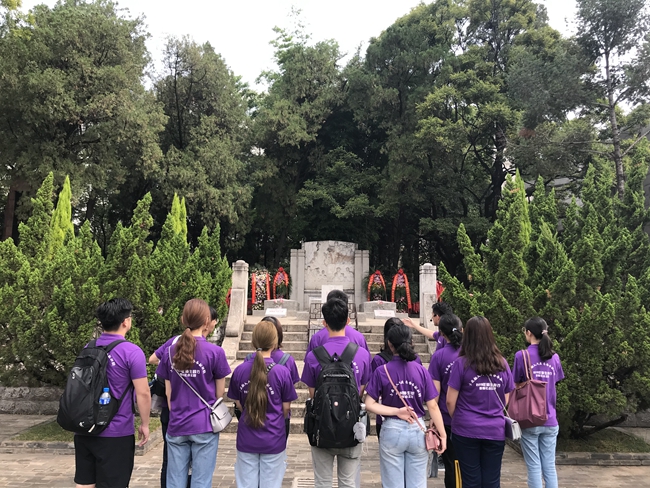 同时,社会实践队队员参观了西南联合大学博物馆、革命烈士纪念碑和“一二一”四烈士墓,并在烈士墓前默哀。实践队队员在西南联大原校舍中重温西南联大历史,唱响联大校歌,学习感受“刚毅坚卓”的校风。实践队队长、2017级本科生段琢说:“通过今天的交流,我们更加深入地了解了西南联大的历史,更加深刻地体悟到了陈炳富先生的思想与精神,为我们更好的实现将小我融入大我提供了强大的精神动力,激励我们更好的实现中华民族伟大复兴的历史使命!”