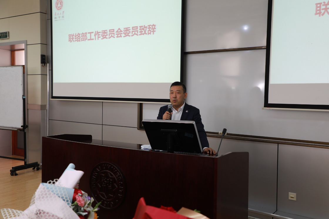 管科系主任、管科教工支部书记李勇建教授率先发言,对到场领导、教师及返校校友表示了热烈欢迎,对管科联络部的正式成立表达了由衷的祝贺。李老师与校友们一起分享了管科系发展过程中的一些故事和思考,特别汇报了在“新百年,新商科”的指导思想下,管科系未来发展的总体目标和规划。李老师号召校友们多关注管科系的发展和建设,积极参与到校友平台的各种活动中来,相互之间加强交流和合作。