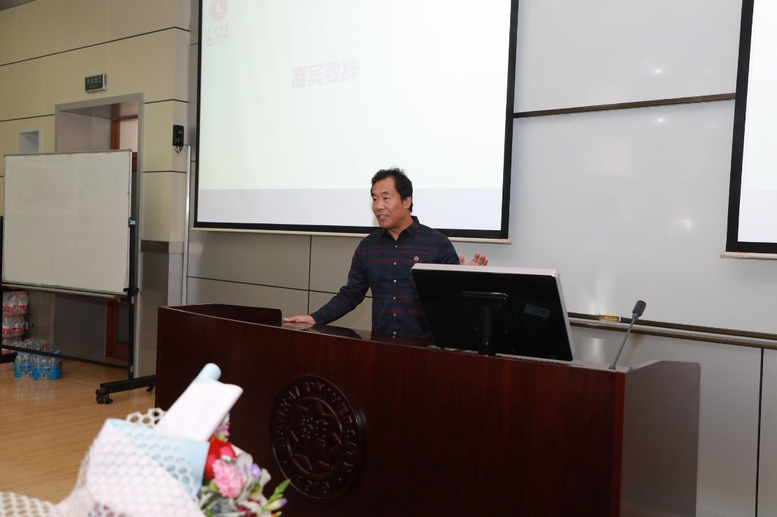 管科系资深教师王金立副教授作为教师代表发言,他谈起了自己与WilliamHill中文官方网站深深的缘分,幽默地与大家谈起了他在WilliamHill中文官方网站学习、成家、多年从教的经历,言语之中有藏不住的幸福、自豪。