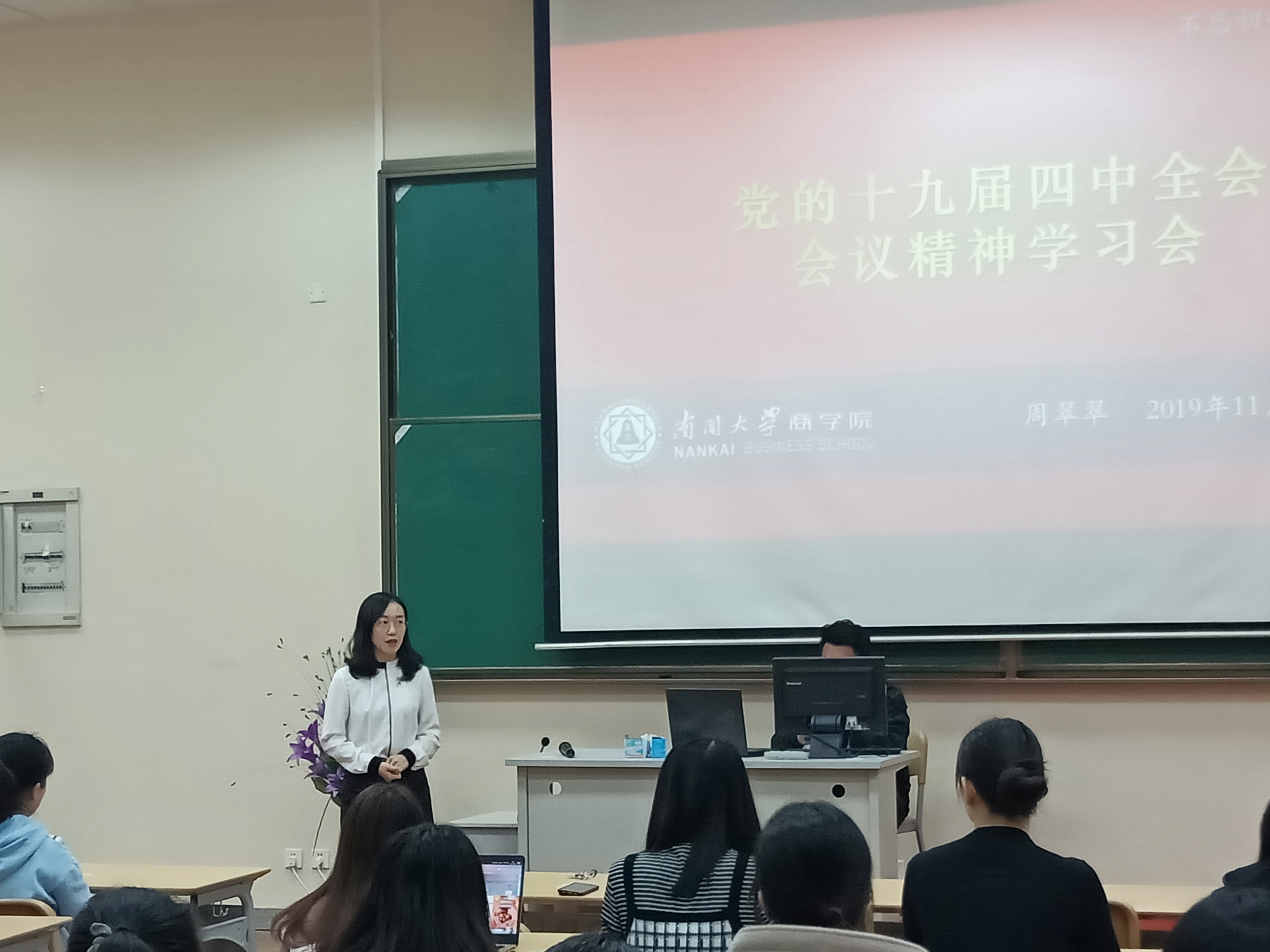william威廉中文官网团委书记周翠翠为支部成员讲授了“党的十九届四中全会”会议精神主题微团课。周翠翠带领支部成员学习了党的十九届四中全会公报,深刻学习了《中共中央关于坚持和完善中国特色社会主义制度、推进国家治理体系和治理能力现代化若干重大问题的决定》中推进国家治理体系和治理能力的总体目标,13个显著优势以及13方面的具体要求。周翠翠指出“党和国家历来重要青年工作,全体青年团员作为党的助手和后备军,要认真学习、领会、贯彻、落实党的十九届四中全会精神,时刻铭记使命担当,不忘初心,砥砺前行!”。