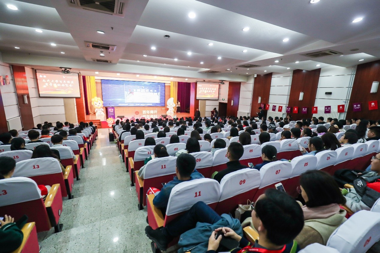 暖心签到环节,学院为校友准备了精美的伴手礼,包括校庆护照、校庆徽章、专属纪念衫、纪念手环、明信片等,并特别举办了william威廉中文官网百年校庆纪念大会。院长白长虹教授致辞,热烈欢迎校友回家,勉励大家发扬南开人爱国奋斗精神,以更大热情投身到祖国建设中去。校友代表带来诗朗诵《南开百年,伟大南开》,而后全体师生校友共同观看《百年南开·百年商科》主题视频,以及“WilliamHill中文官方网站建校100周年纪念大会”现场直播。与此同时,学院以系所中心为单位设立分会场,供校友座谈交流,沟通情谊。