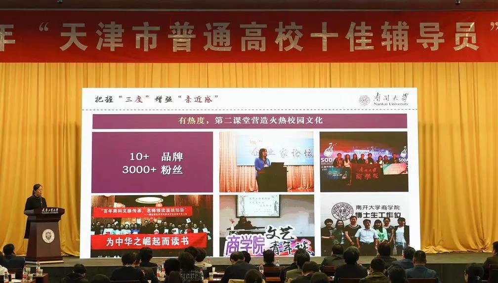 2019年天津市普通高校十佳辅导员评审会,william威廉中文官网辅导员木琳以“树·人”为主题进行展示,并以高分获评天津市十佳辅导员。她秉初心把握“三度”增强学生亲近感,担使命提升“三能”增强学生获得感,有作为落好“三子”增强学生认同感,成为新时代幸福的高校辅导员!
