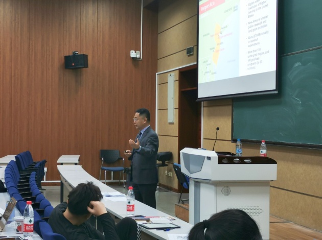 宣讲会上,杨建梁主任详细介绍了2020年国际联合培养项目概况、合作院校、申请条件、项目类型、学费与奖学金、申请及派出程序、各项目特色优势以及需要注意事项等方面。涉及同学们关注的热点问题会上也进行详细说明。随后,刘兴才博士详细介绍了美国罗格斯大学的基本概况、校园风景以及联合培养项目特色。