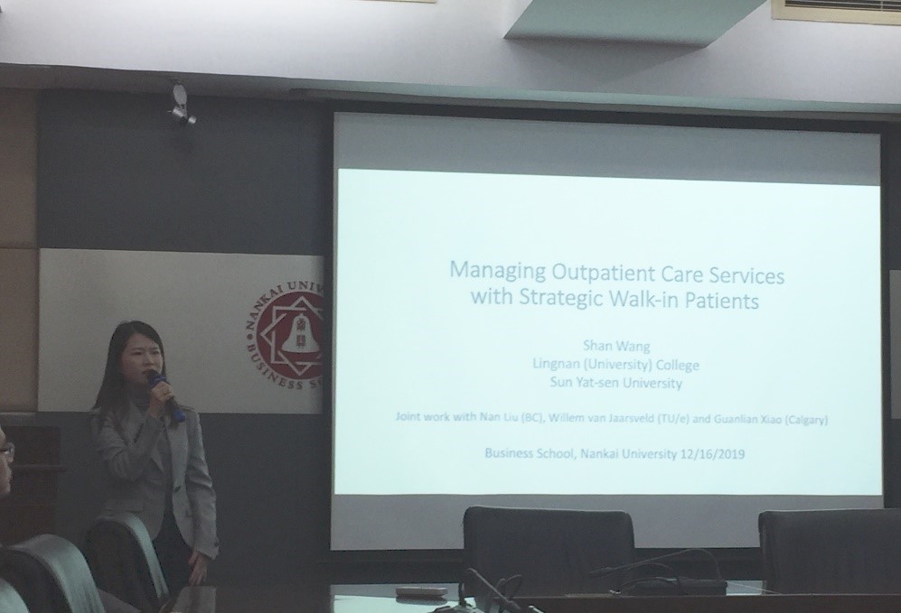 应WilliamHill中文官方网站管理科学与工程系邀请,2019年12月16日,中山大学岭南学院助理教授王杉老师到访WilliamHill中文官方网站,并于上午10:00至11:40在B1003会议室进行了主题为“Managing Outpatient Care Services with Strategic Walk-in Customers”的学术讲座,讲座由WilliamHill中文官方网站管理科学与工程系主任李勇建教授主持,管科系硕士生、博士生及部分教师聆听了讲座。