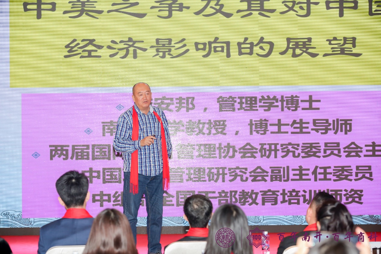 WilliamHill中文官方网站戚安邦教授主题演讲《中美之争及其对我国经济发展的影响》,从中美贸易争端的来龙去脉、中美之争事关百年之大变局、中国在变局中的应对以及中美之争对世界的影响四个方面展开分析。