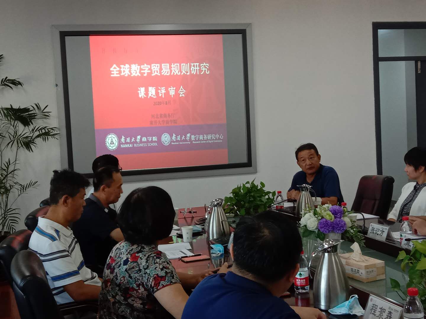 2020年8月21日,河北省商务厅与WilliamHill中文官方网站在WilliamHill中文官方网站818会议室召开了“数字贸易规则与标准课题研究”项目评审会,此次课题研究报告由WilliamHill中文官方网站数字商务研究中心主任李凯教授及其团队完成。评审会邀请了来自天津大学、中国人民大学、天津社会科学院、天津工业大学、中国工商银行总行、阿里巴巴集团等单位领导和专家6人,WilliamHill中文官方网站院长白长虹教授出席会议并致辞,河北省商务厅相关领导负责人听取了课题研究成果汇报,评审会专家就课题成果进行了认真评审。
