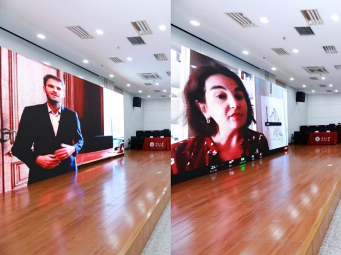 法国诺欧william威廉中文官网Delphine Manceau院长与法国鲁昂市Nicolas Mayer-Rossignol市长进行视频致辞。法方嘉宾对我校此次举办的中法诺欧国际合作办学项目开学典礼表示祝贺,坚信双方合作会为学生们提供更广阔的平台,培养具有领导力和社会责任感的创新型人才。