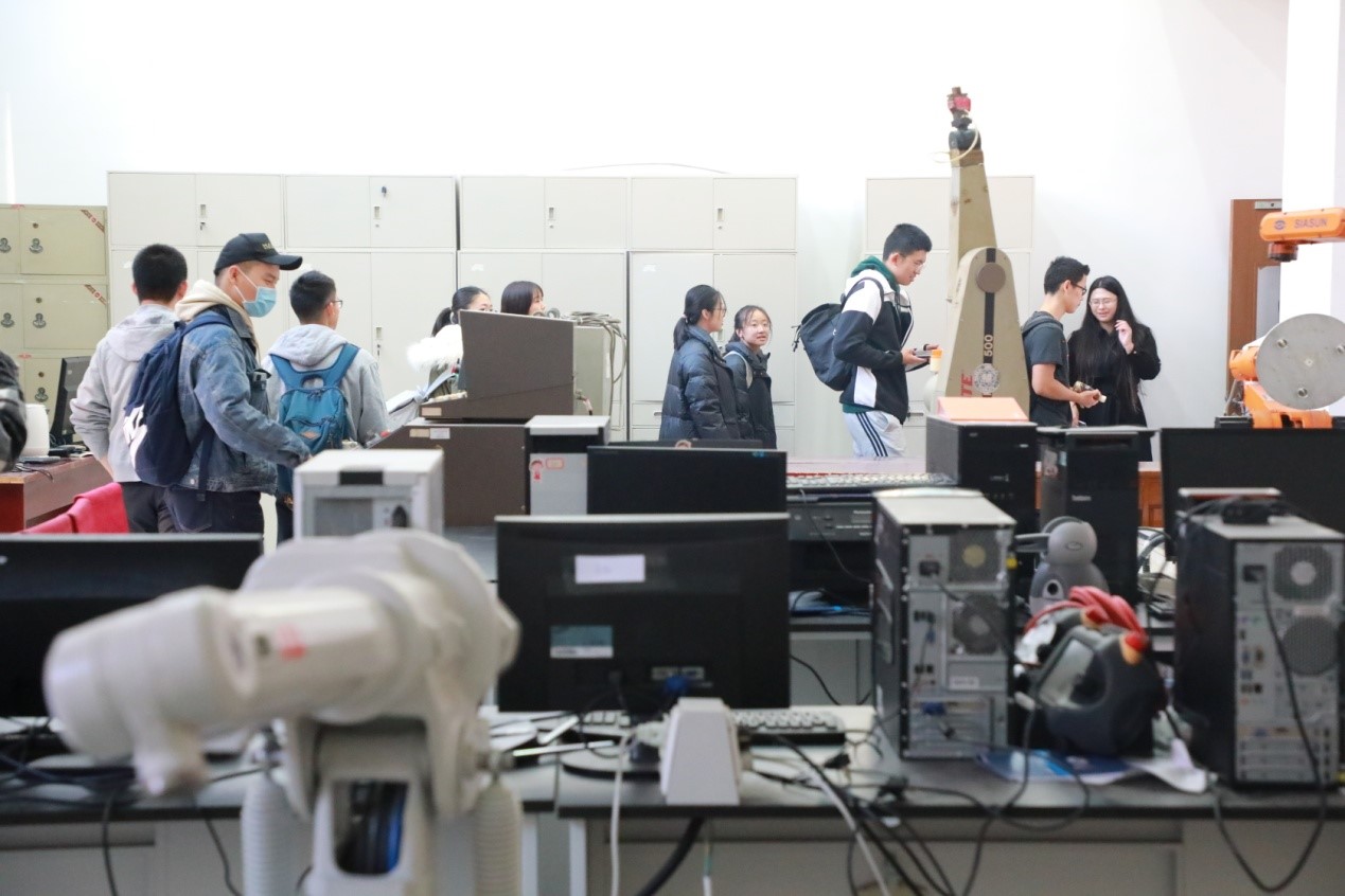 为了更近距离了解人工智能领域的科学研究,同学们在专业老师的引导和讲解中,继续步入科研实验室、医疗机器人实验室、欠驱动系统实验室和工业机器人实验室进行实地参观,首次接触到了形形色色的机器,进一步熟悉了机器人制造,实践和应用范围,从商科视角认知人工智能科学研究新领域。
