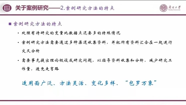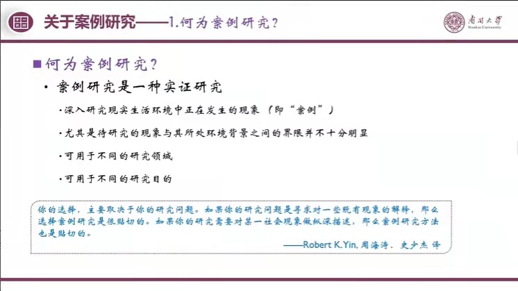 案例研究方法需要预先提出理论假设或研究问题,并基于此,使用多种渠道收集资料,并进行交叉分析。该方法适用面广泛、应用灵活,可用于不同的研究目的,例如解释或者探索现实生活中各种因素之间的因果关系、描述某一种现象及其所处的现实情境等。