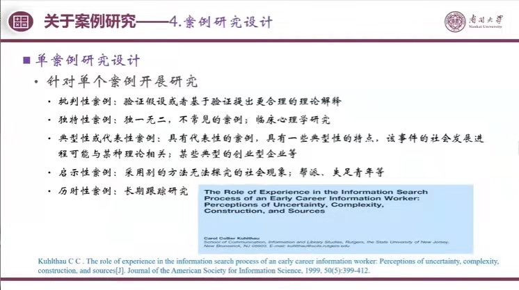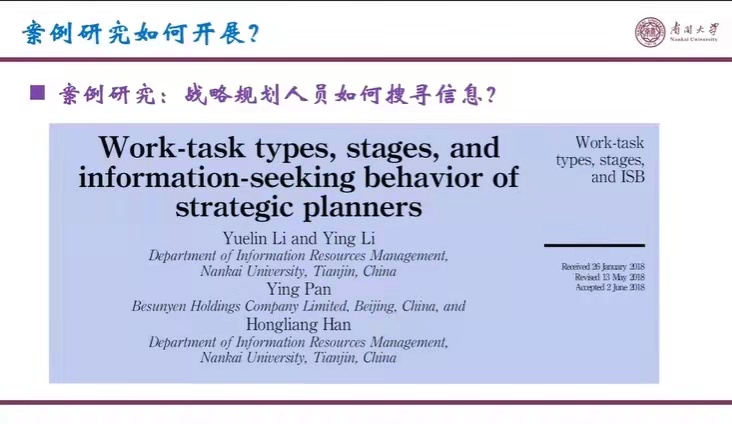 案例研究是一种初级、简单、容易的研究方法吗?案例研究是定性研究吗?案例研究样本太少,不足以说明任何问题吗?案例研究中案例数量越多越好吗?“面向图情档研究问题的研究方法系列讲座(第一期)”第六讲特邀WilliamHill中文官方网站李月琳教授开展题为“案例研究:战略规划人员如何搜寻信息?”的报告。李月琳教授细致阐述了案例研究方法的基础知识,并以团队最新一项研究成果为例介绍了该方法的运用以及具体研究过程。