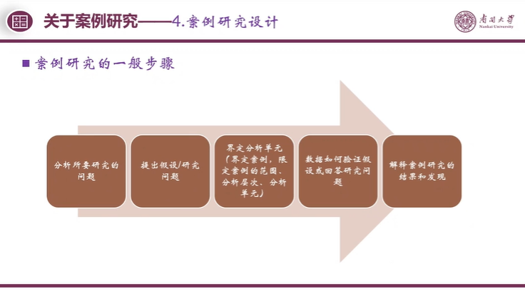 案例研究的一般步骤包括:分析所要研究的问题、提出假设/研究问题、界定分析单元、验证假设/回答研究问题、解释研究结果与发现等。