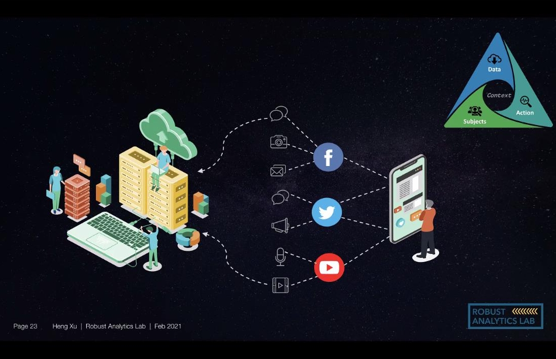 Heng XU教授首先向大家描述了两种常见的数据匿名化机制与两种流行的差异统计证据。同时指出,近年来数据匿名化技术的研究与实践迅速发展,然而针对隐私保护对弱势群体在差别影响的关注度却十分有限。随后,Heng XU教授详细介绍了数据匿名化概念的发展与数学形式主义的内容,其中证明了这两种数据匿名机制对差异的可识别性具有显著影响。会上,Heng XU教授结合实际案例,与大家讨论这项工作的意义,并强调数据科学家与决策者需要在保护隐私和纠正差别影响之间相互权衡。在接下来的交流环节中,大家踊跃发言、互动热烈,Heng XU教授针对大家关于数据匿名化与隐私保护方面的问题一一进行耐心讲解。