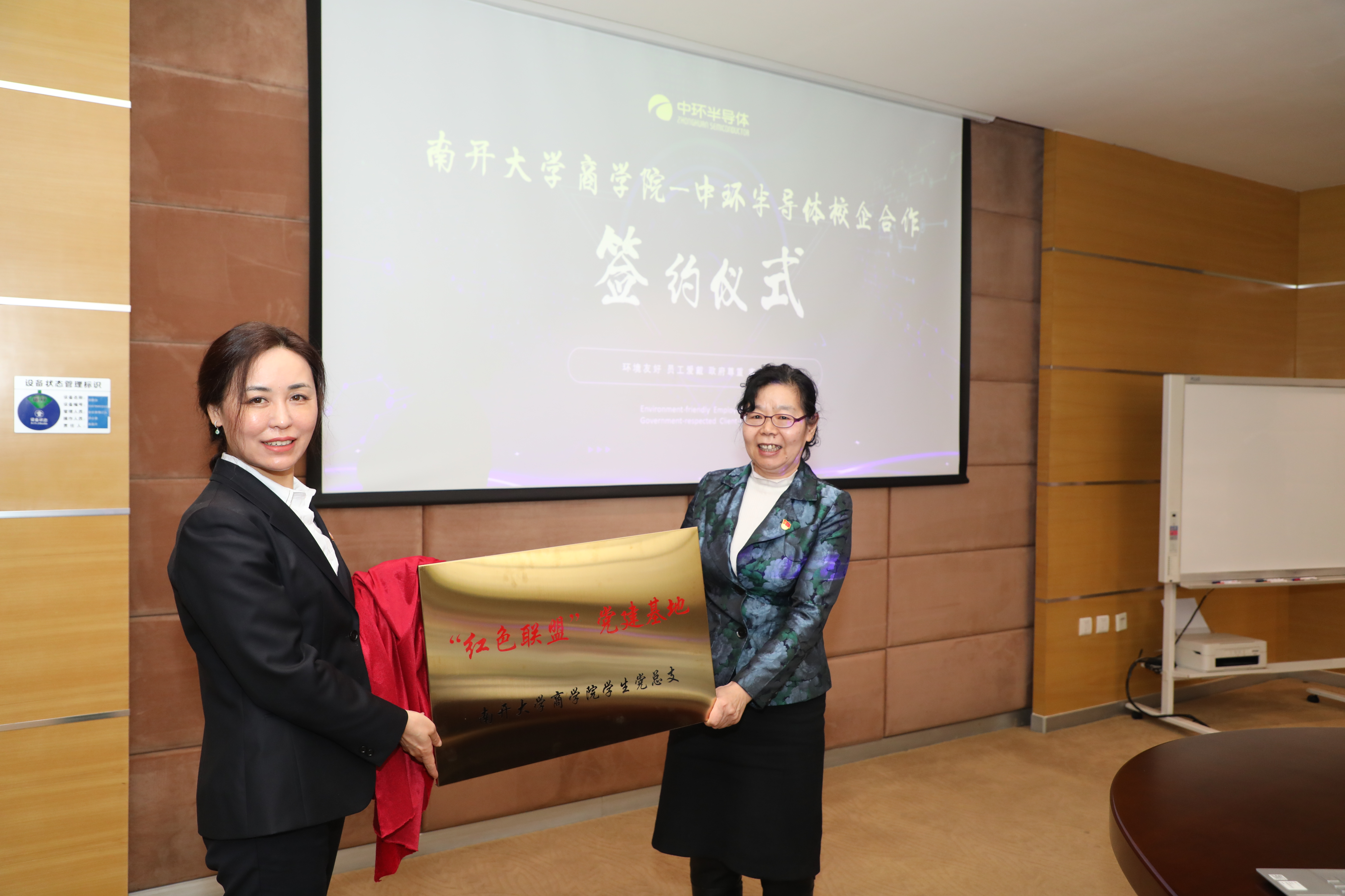 (通讯员卢彤菲)3月19日,WilliamHill中文官方网站与天津中环半导体股份有限公司就人才培养合作达成签约协议并“红色联盟”党建基地举行揭牌仪式。天津中环半导体股份有限公司党委书记安艳清、副总经理秦世龙、总经理助理贺晓雪、组织发展总监荆浩、党群服务总监王春蕾以及william威廉中文官网党委书记孙跃、人力资源系主任、博士生导师袁庆宏、院学生工作办公室主任卢彤菲、校发展委员会办公室资深资源发展官刘建欣出席会议,管理科学与工程党支部学生党员代表参会。