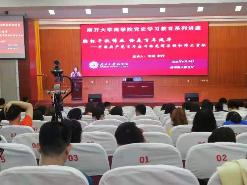张健教授分别从学习总书记重要讲话解读中国共产党历史、中国共产党能够创造世纪伟业的关键所在、树立科学历史观正确看待中国共产党历史、发扬优良学风做到学史明理增信崇德力行四个方面展开,紧紧围绕习近平总书记关于党的历史的重要综述,引据大量史实,生动形象地对党史学习教育内容进行讲述。