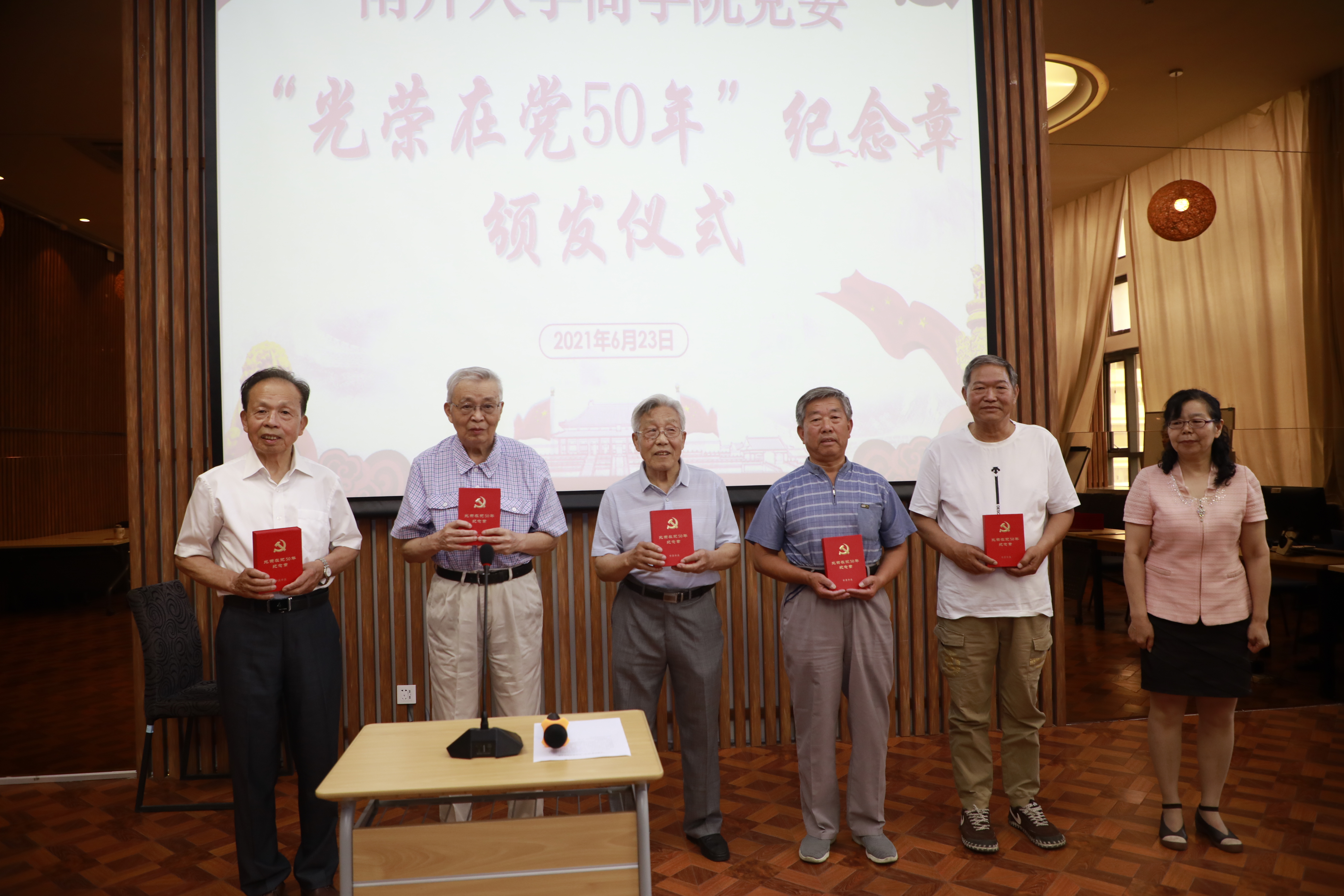 孙跃书记宣读了华玉文等九位“光荣在党50年”纪念章获得者名单并为他们颁发纪念章,现场掌声雷动。获奖代表李汝良同志和张金成同志怀着对党矢志不渝的坚定信仰、绝对忠诚的深厚感情,分别做了交流发言。李汝良同志带领我们回顾了近代以来新中国快速发展的光辉历程,用革命烈士的光荣事迹激励我们强化责任担当;张金成同志分享了他对“初心、梦想与行动”三者关系的深刻见解,指出只有怀抱正确的初心,迈出坚定的步伐,才能编织出五彩缤纷的梦想画卷。