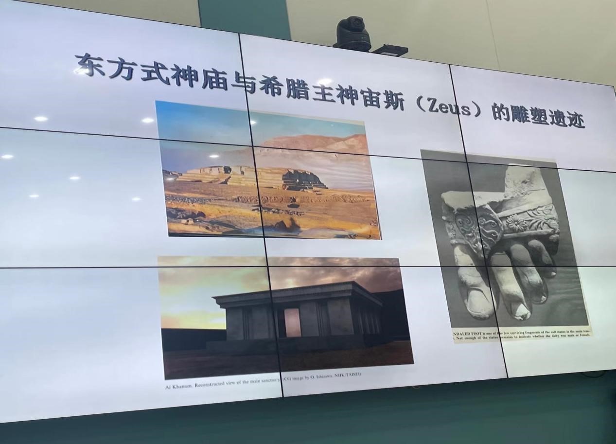 杨教授通过历史术语,展示地图、画作、实景等,向同学们介绍了亚历山大与张骞开通丝绸之路的历程。马其顿国王亚历山大东征,路上的资源使得他建立起地跨欧亚非的希腊化王国,促进了古希腊文明与波斯、印度、中亚及中国文明的交汇融合;汉武帝时期,张骞为开拓西部疆土,建立强大汉帝国的雄心壮志出使西域,开展丝绸的对外贸易,成为中国丝绸之路的开拓者。同时,还详细介绍了早期丝绸之路沿线重要国家安息、条支、大秦等,及其它们与中国的关系。