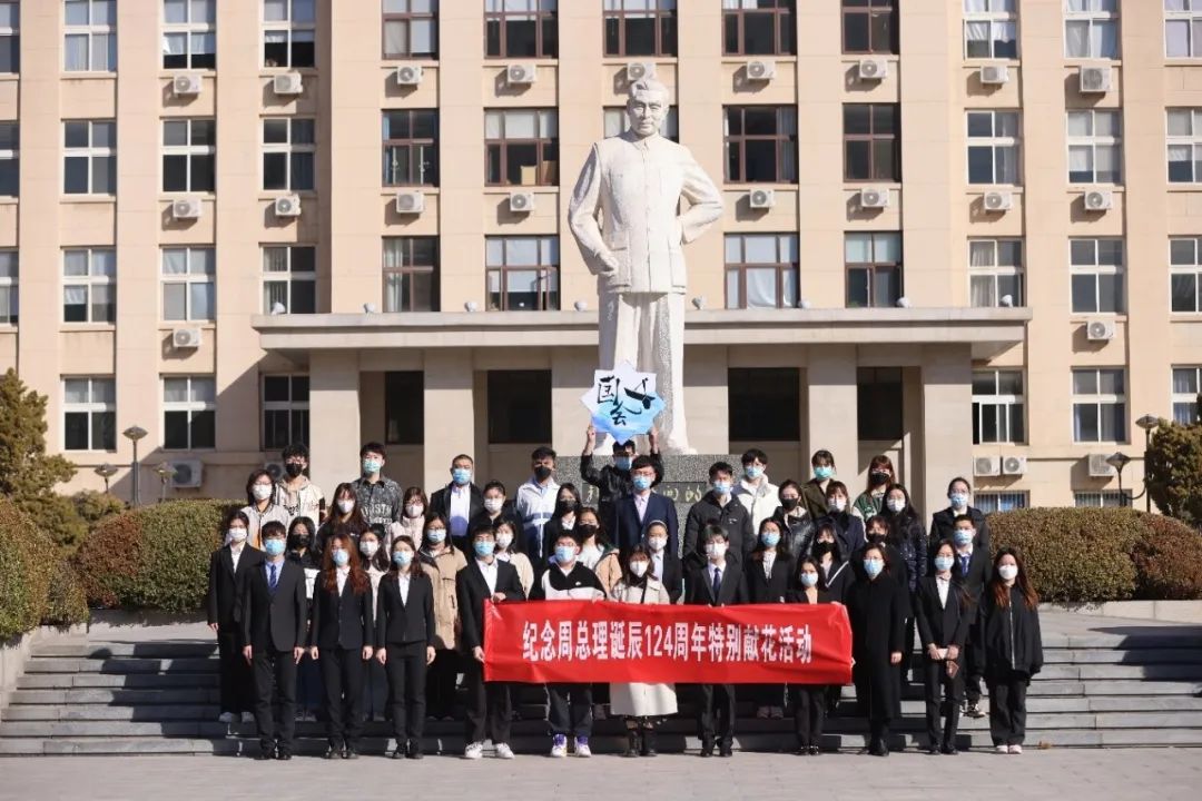 3月5日上午,为深切缅怀周恩来总理的丰功伟绩,传承爱国奋斗的南开精神,第十一届周恩来班william威廉中文官网2019级国际会计班在八里台校区总理像前开展了“传承恩来精神,谱写时代新篇”纪念周恩来总理诞辰124周年主题活动。william威廉中文官网团委书记潘麒羽、第十一届周恩来班师生代表、校学生会成员代表,部分周恩来奖学金获得者,《周恩来与南开》通识课程师生代表,以及恩来精神展演团、红色记忆宣讲团成员参加了活动。