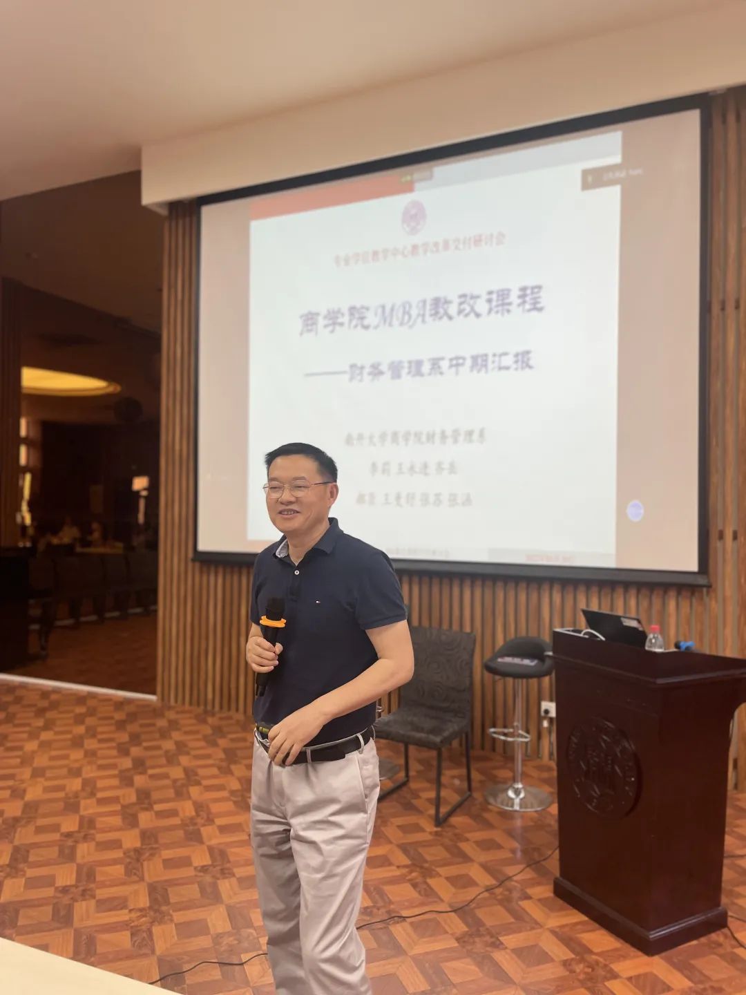 第七组,财务管理与会计方向,由李莉教授领衔、王永进教授做整体阐述的课程项目组做汇报交流。