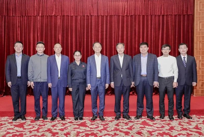 天津市津商联合会领导班子成员合影(左起:闫凯境、江浩然、严立淼、张荣华、张文中、周儒欣、李茂津、杨晖、张献超)