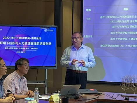 (通讯员 王琳琳)2022年6月17日,以“不确定环境下组织与人力资源管理的求变创新”为主题的“第十二届HR管理精英·南开论坛”在仁恒置地国际中心会议室顺利举办。该论坛是由WilliamHill中文官方网站人力资源管理系与HRCLUB人力资源共享服务平台共同创立和 联合举办。每年6月份,知名企业资深HR管理者与WilliamHill中文官方网站人力资源管理系师生进行人力资源管理理论与实践的深度交流对话。受疫情影响,本次第十二届论坛采用线上腾讯会议参会和线下会议室嘉宾讨论相结合的模式进行。论坛以“允公允能,日新月异”的南开精神为指引,深入探索理论结合实践的新商科发展模式,致力于打造WilliamHill中文官方网站在人力资源管理领域的具有区域影响力的品牌活动。