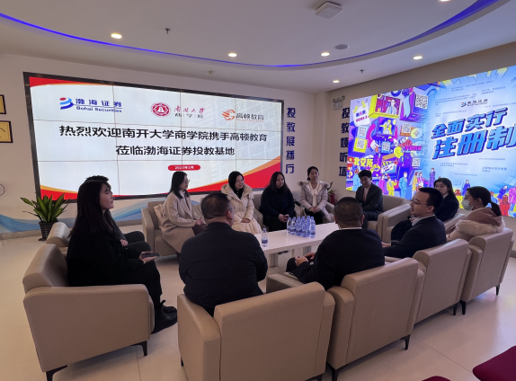 渤海证券党办负责人、团委书记,财富管理总部党支部书记、财富管理总部营销管理部经理,投资者教育基地负责人等企业领导出席活动,双方围绕党团共建、校企合作、实习招聘等开展交流并达成合作意向。