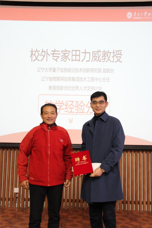 白长虹院长为校外专家田力威教授颁发聘书
