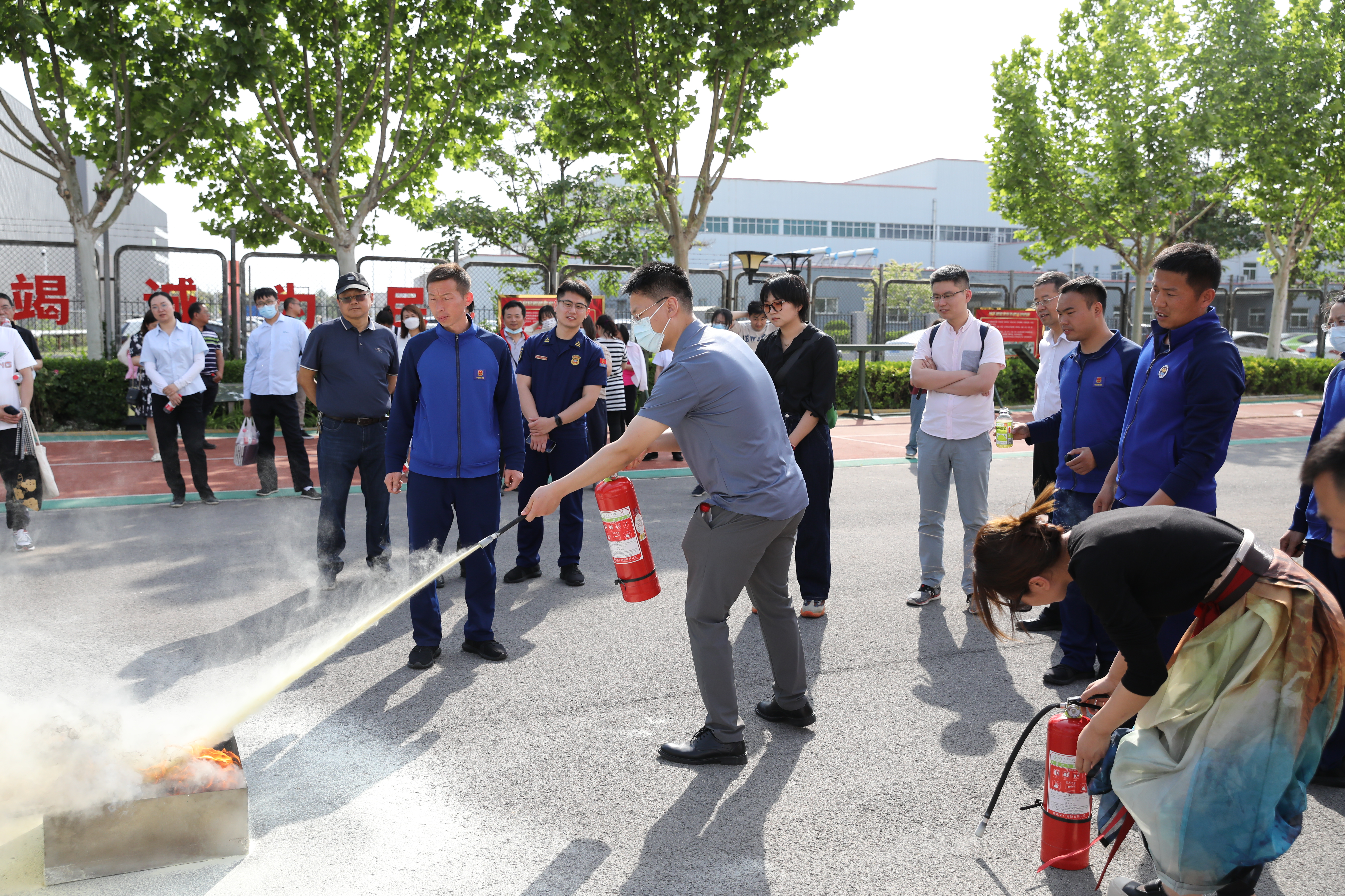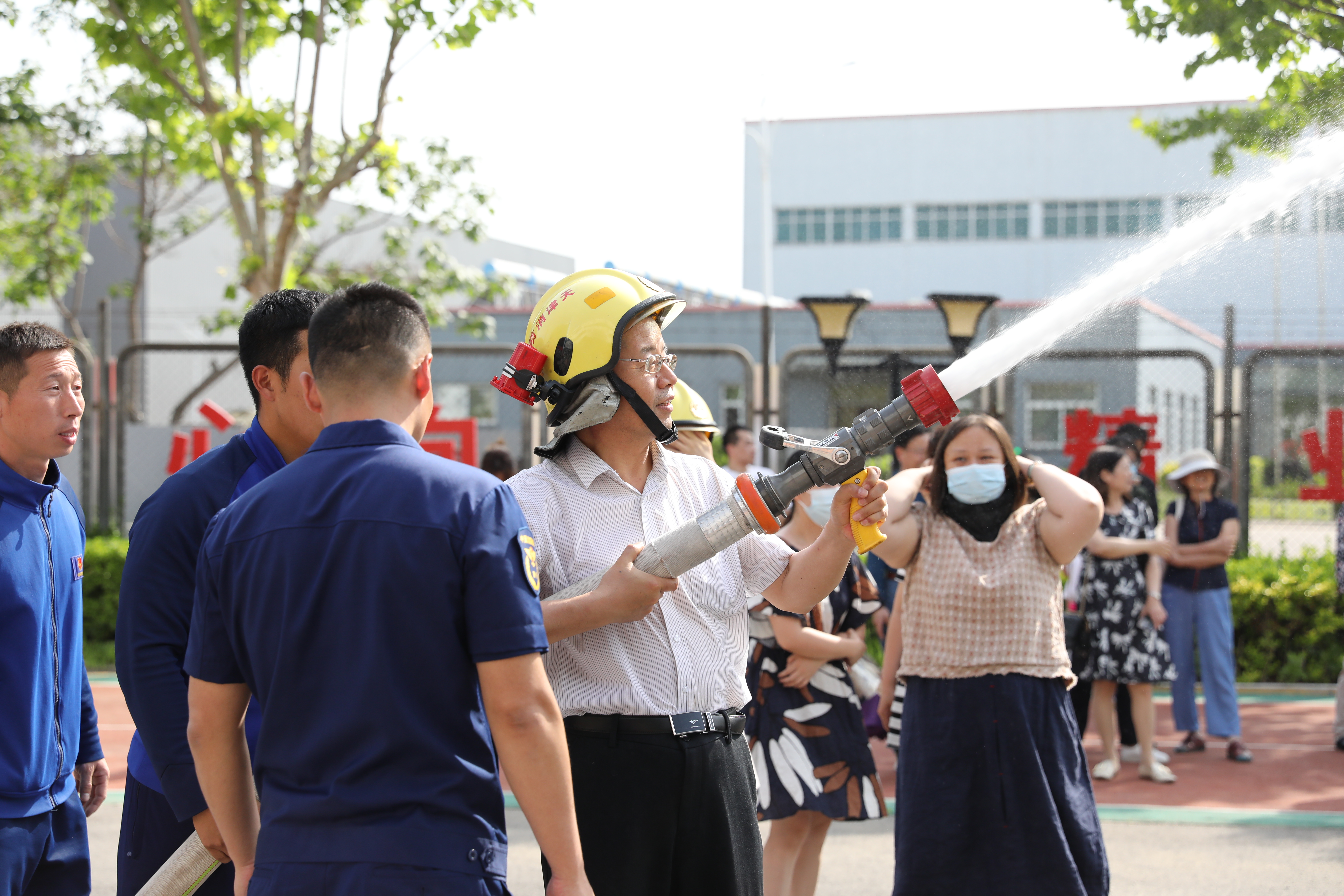 最后,消防指战员组织师生来到消防队训练场,进行了灭火器扑灭初期火灾、高压水枪灭火、模拟火灾现场逃生等演练,一系列实操练习让大家学会发生火灾时的正确救火方法及逃生手段,增强了师生的消防意识,树立了正确的消防观念。消防队员更是在训练场上演了精彩的攀爬高层建筑灭火救援“秀”,矫健的身手与惊人的速度让大家对中国消防由衷敬佩。