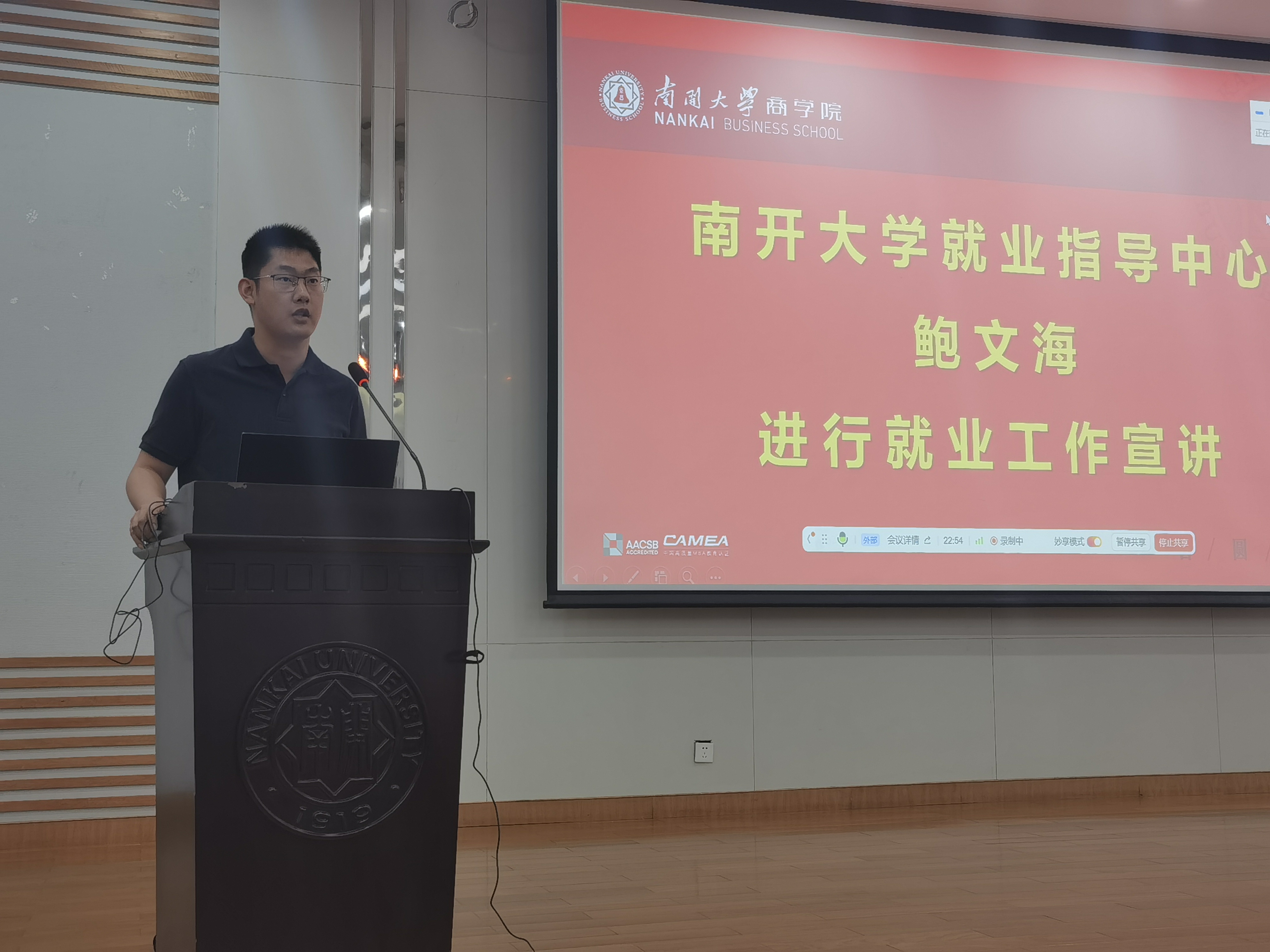 就业指导中心鲍文海梳理了毕业生就业渠道和就业类型,建议学生把握好求职的时间节点,未雨绸缪。此外,他介绍了政策性就业和非政策性就业方面学校提供的资源平台及信息渠道,强调同学们要投身实习实践,了解行业情况;拓宽投递范围,积累面试经验;挖掘信息渠道,抢占求职先机。