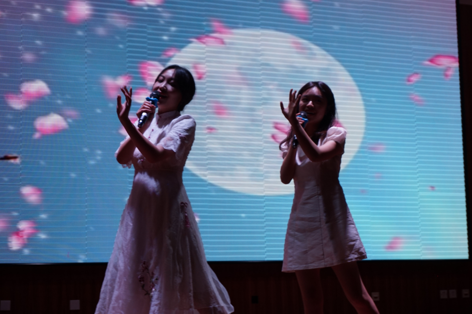 演出的第一篇章——“拾贝”带大家回忆大学四年的点点滴滴。绚丽的色彩、动感的节奏、舞动的身影,节目《Nxde》向我们展现了舞蹈的激情澎湃和舞者的个性张扬。白金硕同学带来的单口相声《那些年,被我追过的女孩》,让我们在一片片欢笑声中回忆起青春年少的悸动。“临行辞别你,欣赏未够;分一碟相思豆,冬至送轻舟”一曲《苏州河》又让大家感受到了离别。