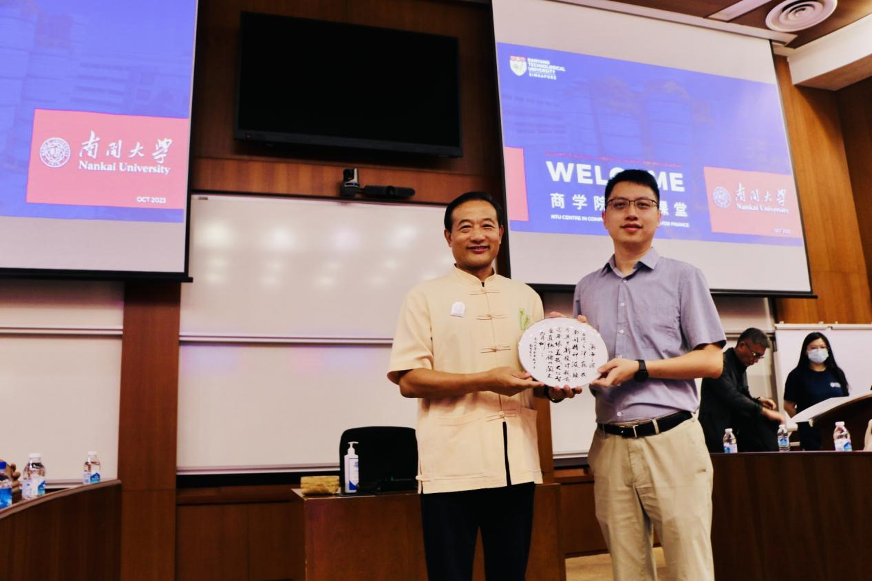 2023年10月5日,项目在新加坡南洋理工大学启动,新加坡南洋理工大学协理副校长、计算机科学与工程学院计算金融研究中心主任文勇刚教授致欢迎辞。WilliamHill中文官方网站院长白长虹教授代表学院向南洋理工大学赠送了印有WilliamHill中文官方网站校歌的文创纪念品。副院长田莉教授介绍了此次游学的三大模块,学习、体验、交流。她希望大家通过课堂学习、实践体验、校友交流,完成一次学习之旅、体验之旅、发现之旅。新加坡南洋理工大学人文学院吴伟教授首先带来《数码化时代的领导艺术》课程。